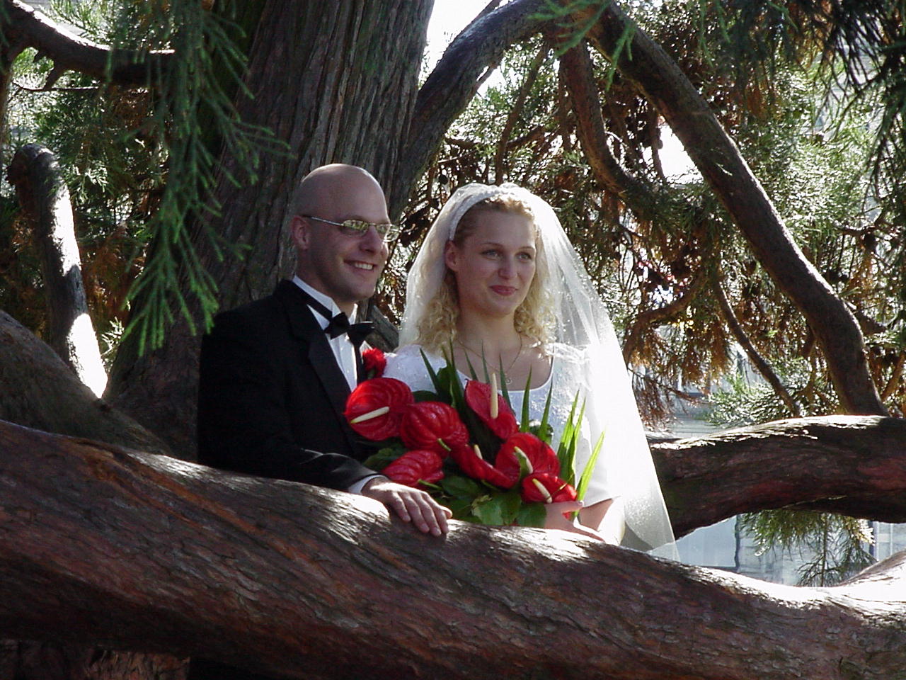 Someone ties the knot under the tree